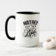 La taza de café de la madre de la novia se muestra en blanco con acentos negros. Personalizar este artículo o compra tal cual. Imagen con licencia