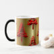 Un elegante tazón de Navidades con un patrón decorativo de árboles de navidad rojos colocados sobre un fondo metálico de oro para añadir un toque de clase festiva a su cocina esta temporada de fiestas.