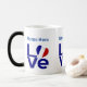 Esta morfología o taza mágica personalizada incluye la palabra "AMOR" en letras azules, con una bandera francesa en forma de corazón como "O". Programas de diseño en tres lados. Es un gran regalo para las celebraciones del Día del Padre, el Día de la Madre o el Día de la Bastilla. Perfecto para reuniones de amigos o familiares, también hace un Navidad genial o un regalo de Hanukkah.