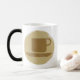 Esta taza es negra, hasta que le agregues café, entonces aparecerá el signo de café de estilo vintage.