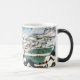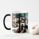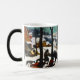 Magia Mug con Pieter Bruegel la pintura al óleo sobre madera de The Hunters in the Snow (1565). Un pueblo cubierto de nieve recibe a un grupo de cazadores y perros. Los aldeanos patinan en los helados lagos. ¡Un feliz regalo de Navidad!