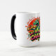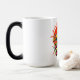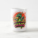 Un dragón juguetón con cuernos devora con entusiasmo una porción de pizza cursi, encarnando el caos de un divertido y delicioso fiesta de pizza.