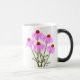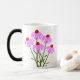 Una taza con hermosas flores moradas. La imagen y el fondo se pueden personalizar. Se puede añadir texto.