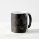 Imagen de estudio minimalista y fotorrealista de una esfera obsidiana negra pulida realzada con intrincadas venas doradas al estilo KintŘT. Las grietas brillantes forman un contraste sorprendente contra la superficie lisa y reflexiva, que simboliza la resiliencia, la belleza y la fuerza a través de la imperfección.