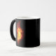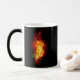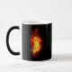 Una brillante pluma de pavo real hecha de fuego y llama sobre fondo negro.