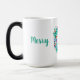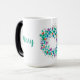 Ahora por algo especial: ¡una taza de morfología con un saludo de Navidades! El arte original es la pluma y la tinta sobre la acuarela de una guirnalda dulce de fantasía. Morphing significa que la imagen aparece cuando se vierte el líquido caliente y desaparece lentamente mientras el líquido se enfría.