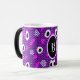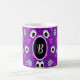 tazón de café con formas geométricas y puntos de color lila y púrpura