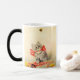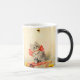 Magia Mug con el gatito de Meta Plückebaum con cinta roja (1876). Un gatito gris con rayas oscuras está bellamente adornado con una cinta roja. El gatito juega con una abeja. Las flores amarillas decoran el primer plano. ¡Un regalo maravilloso para los amantes del gato y del arte alemán!