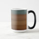 Imagen de diseño de arte del Desierto Pintado del Suroeste por TheFabricSeal en Zazzle. Estilo: Morphing Mug Se parece a una simple taza negra, pero agrega algo de café y - magia - se revela tu diseño gracioso, patrón fresco o foto especial. ¡Esta taza seguro que no pasará desapercibida! Se elabora con un acabado especial sensible al calor, de modo que, cuando se llena de cualquier líquido caliente, cambia de color y revela tu diseño sobre un fondo de color blanco brillante. Parece simple, pero confía en nosotros: tu taza mágica siempre dará de qué hablar. Esta magnífica ilustración de arte gráfico digital presenta una superficie de madera falsa y rayas horizontales de acuarela pintadas en capas con hermosos colores inspirados en los desiertos del magnífico suroeste. Colores en tonos negros, marrones, burdeos, rojos, rojos, rojos, terracota, ladrillo, marrón, arena, azul turquesa y verde.