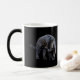 Jaguar Diablo morphing mug negro es para bebedores de café, dueños de coches Jaguar y dueños aspirantes, amantes de gatos jaguares, partidarios de la jungla y gente a la que le gustan los gatos grandes. Jaguar Diablo es el arte original de superrealismo Steamy Raimon.