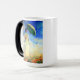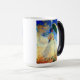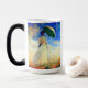 Magia Mug con la esposa de Claude Monet, Camille, sosteniendo una sombrilla verde mientras el viento sopla su velo azul en un campo verde y dorado. Un gran regalo de Monet para los amantes del impresionismo y el arte francés.