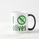 Odio las aceitunas. El diseño usa letras verdes, un corazón verde y el cartel internacional "NO" para leer "Odio las aceitunas". Para los que no les "dan corazón", realmente les desagradan, pero tienen un sentido del humor (humor), les encanta reír y les hacen cosquillear su hueso gracioso.