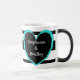 Añade tu nombre y el de tu pareja a esta taza de café negra y turquesa. Un regalo perfecto para El día de San Valentín, cumpleaños o aniversario.