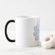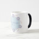 A daisy wreath color morphing mug in pastel blue, yellow and pink. Customize the name area.