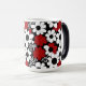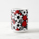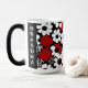 Flores rojas, negras y blancas con un brillante patrón de baldosas personalizado de tazón de café. Agregue un miembro de la familia o un nombre en el área de personalización.