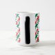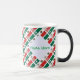 Morphing mug with a tiled Mexican flag pattern covering the full printable area. Both sides feature a white fractal squiggly‑square patch with your custom name in green text. Perfect for Mexico family reunions, Cinco de Mayo, Mexican Independence Day Sept 16, cultural pride, and everyday use.