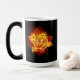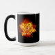 Rosa en llamas del fuego y la llama sobre fondo negro.