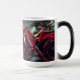 Las rosas negras y rojas en un fondo oscuro, con un pequeño chorrito de sangre, son perturbadoramente hermosas.