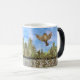 Disfrute de la taza de café o té de la mañana con esta taza de desayuno que representa a un gorrión volador de acuarela.