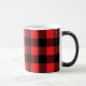 Un país lindo, rojo y negro, manta de búfalo, chequeo de tazas de café.