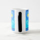 ¡Magia Mug con un gato negro en la pintura Starry Night de Van Gogh! Este gatito de ojos azules mira adorablemente desde un fondo de remolinos azules y una brillante luna amarilla. ¡Un regalo fantástico para los amantes del gato y para los coleccionistas holandeses de arte!
