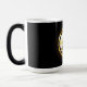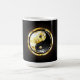 Joyería, oro y símbolo yin yang negro sobre fondo negro. Oro yin yang.