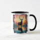 Taza Majestuoso ciervo en la reflexión del lago al atar