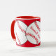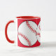 Esta taza cuenta con unas pelotas rojas y blancas rodeadas de un fondo rojo. El texto dice: Madre de béisbol. Personalizar fácilmente el texto para un hincha especial de deportes o elimina por completo. Ideal para el Día de la Madre o en cualquier época del año.