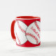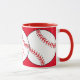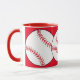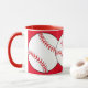 Esta taza cuenta con softball rojos y blancos rodeados por un fondo rojo. El texto dice: Mamá de Softball. Personalizar fácilmente el texto para un hincha especial de deportes o elimina por completo. Ideal para el Día de la Madre o en cualquier época del año.