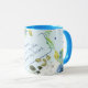 Este encantador Mug presenta flores de color azul, amarillo pálido y blanco acuarela con hojas verde oliva y un diseño de efecto sello de goma con las palabras "Mamá, eres mi vida, eres mi corazón" en color azul, en un fondo azul pálido. Haga clic en "Personalizar" para cambiar el color de fondo, si lo desea. Esta taza de bonito es el regalo ideal para regalar en el Día de la Madre, su cumpleaños o cualquier ocasión maravillosa de obsequio.