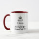 Mantente tranquilo y deja que un abogado se encargue de su divertido regalo de tazas de café. Crea tu propio humorístico Mantener la calma y continuar con la cita. Plantilla moderna de tipografía con corona. Divertidas tazas personalizadas para casa u oficina. Añade tu propio texto personalizado. Idea de regalo de cumpleaños o Navidades especiales para abogado, abogado, abogado, abogado, abogado, abogado, abogado, abogado, abogado, abogado, abogado, abogado, abogado, abogado, notario, jefe, amigos, familia, compañero de trabajo, colega, personal, empleados, trabajadores corporativos, personal, profesional, experto, etc. Mano de color rojo y dentro. Impresión a dos caras. El humor de oficina se presenta para él o ella.