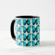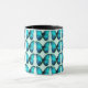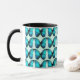 Esta taza absolutamente hermosa es adornada por filas de las mariposas iridiscentes del azul/de la turquesa.