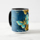 Composición de vuelo, joyería, oro y mariposas oscuras sobre fondo de joyería texturada. Mariposa dorada.