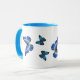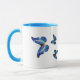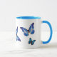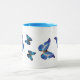 Mariposas Morfo Azul Café Mug. Dibujos de malla de gradiente vectorial de dos variedades diferentes de mariposas morfo azules.