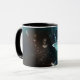 Mariposas brillantes nocturnas de menta sobre fondo abstracto negro.