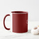 Maroon-Red coffee mug with white script text. This is a template, ready for you to personalize with your own text/name. Cursive handwriting.