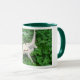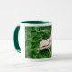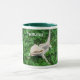 Una taza linda con un dragón barbudo que come un trébol en él. ¡… Delicioso!