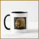 La antigua máscara facial egipcia adorna esta preciosa taza blanca y negra.
