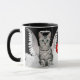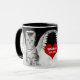 Mantén a tu gato cerca de tu corazón todos los días añadiendo su nombre a esta taza con un corazón rojo que dice "Para siempre en mi corazón" y que tiene un gato de tabby de plata con hermosas alas ángeles.