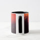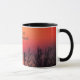 El tazón de café de las escrituras inspiradoras representa un hermoso amanecer rojo y naranja sobre el agua. Presenta la Biblia Verse Matthew 19:26, "Con Dios todas las cosas son posibles".