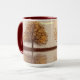 Inspiradora cita tazón de café representa el sol brillando en un árbol y reflejado en el agua. Presenta una parte de Jesús - 'Sermón en el Monte' de la Biblia Verse Mateo 5:14, "Eres la luz del mundo".