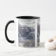 Esta taza muestra la escritura biblia Mateo 5:9 sobre la foto de un costado nevado de la montaña. La llanta y la manecilla están acristaladas con colores a juego disponibles en la construcción de cerámica de microondas y lavavajillas de 11 onzas o 15 onzas.