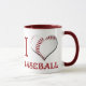 Fanático de béisbol taza de café... regalo ideal para el mejor fanático del béisbol... diciendo que amo el béisbol... con efecto cardiaco
