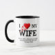 Simplemente elegante INSPIRADOR CHRISTIAN Mug que dice que AMO A MI ESPOSA donde el AMOR es reemplazado por un corazón rojo. Debajo hay un texto basado en verso de la Biblia de Proverbios 18:22 - El que encuentra una esposa encuentra algo bueno... Este texto es PERSONALIZABLE, por lo que puede cambiar a la ortografía británica de FAVOR, o reemplazarlo por su propio texto. También hay texto de personalizable en el medio que puede personalizar con un mensaje adicional. Un regalo ideal para recién casados, aniversarios, Navidades, cumpleaños, VALENTINE, etc. Camiseta a juego disponible.