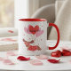 I Woof You Cute Dachshund Dog Red Pink Heart Balloons Mug presenta a un lindo perro de Dachshund que usa gafas con forma de corazón siendo llevadas al aire por globos con forma de corazón rojo y rosa con el texto "I Woof You" en la tipografía de escritura moderna. Con acento de corazones de amor rojos adorables. Un regalo perfecto para novia, novio, novia, novia, esposa, marido, amante de los perros y más para El día de San Valentín, Navidades, cumpleaños, vacaciones, aniversario y más. Creado por Evco Studio www.zazzle.com/store/evcostudio