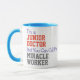 Mensaje divertido en una taza para un Médico Junior. Dice "Me puedes llamar trabajador milagroso".