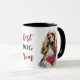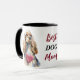 "Mejor Mamá de PERRO" declara esta taza en el centro. La imagen en cada lado es una adorable imagen de un Cocker Spaniel rubio con un corazón rojo. Perfecto para el Día de la Madre o su cumpleaños. Todo el texto es personalizable, así que también puedes cambiarlo para Papá en el Día del Padre.