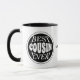 Elegante MEJOR COUSIN EVER tazón de café con texto retorcido blanco en negrita en un círculo negro, y NOMBRE DE PERSONALIZABLE, que puede cambiar para agregar su nombre o borrar. Ideal para comprar para todos los primos que compiten por el título! También es un gran regalo para el Día Nacional de los Primos y durante todo el año. Hay regalos coincidentes disponibles.