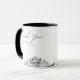 Regalo del tazón de café de Memphis con el guión "gracias". El diseño muestra un impresionante boceto con la capacidad de personalizar de los nombres y la ubicación exacta. Introduzca la herramienta de diseño de Zazzle para personalizaciones adicionales.