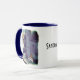 Una taza con un personalizado gracioso sobre un gato mendigo, negándose a trabajar por comida. El fondo, la imagen y el texto se pueden personalizar. Obra de arte original de Personalizados de DB.
